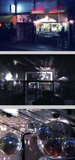 the piece consists of 7 mirrorballs (some motorised) with lights, placed